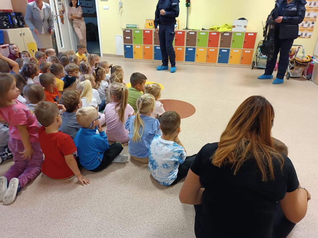 W Gminnym Przedszkolu w Starej Kamienicy odbyło się spotkanie z funkcjonariuszami Policji. Celem wizyty była prelekcja dotycząca zasad bezpiecznego poruszania się po drodze. Policjant przeprowadził pogadankę na temat prawidłowego przechodzenia przez jezdnię, korzystania z przejść dla pieszych oraz ogólnych zasad bezpieczeństwa. Dzieci z dużym zainteresowaniem uczestniczyły w spotkaniu, aktywnie odpowiadały na pytania i utrwaliły sobie zasady bezpiecznego zachowania na drodze. Pamiętając o odblaskach po zmroku i o prawidłowej stronie chodzenia po ulicy. Spotkanie odbyło się w miłej atmosferze pełnej uśmiechu i radości na twarzach przedszkolaków.