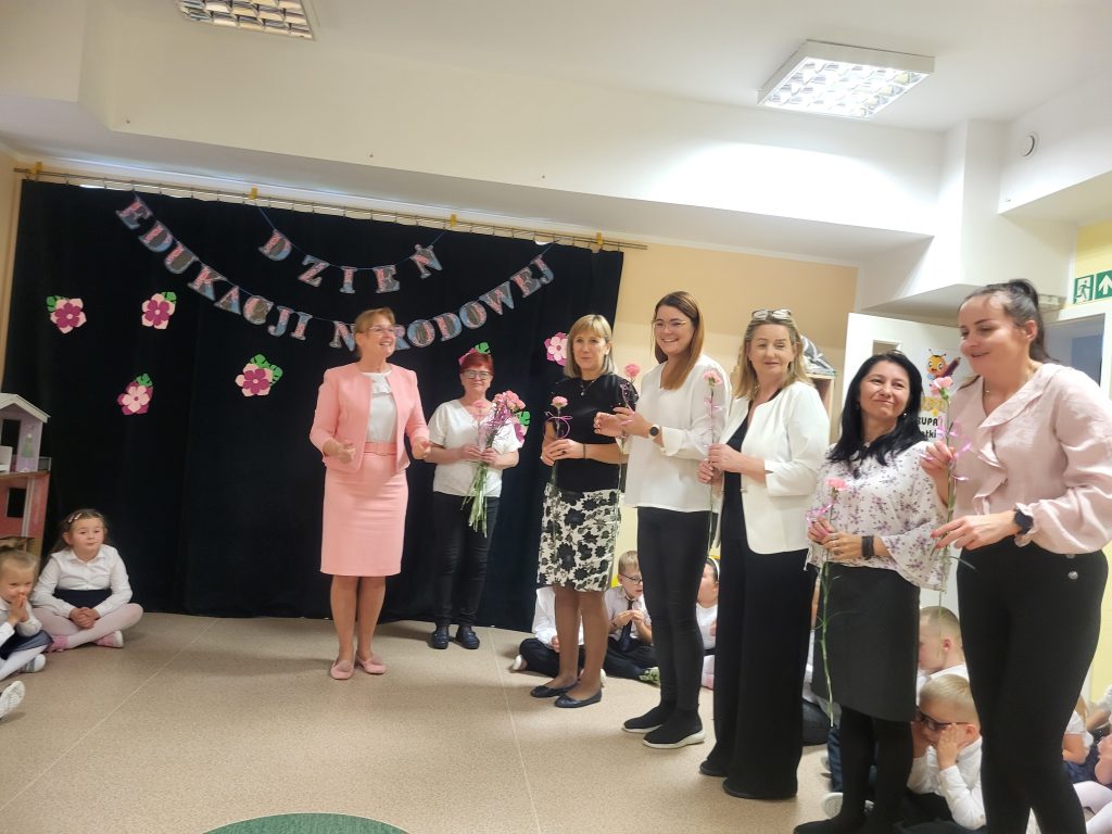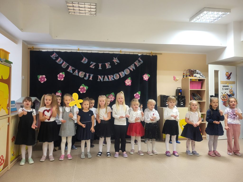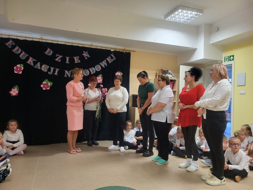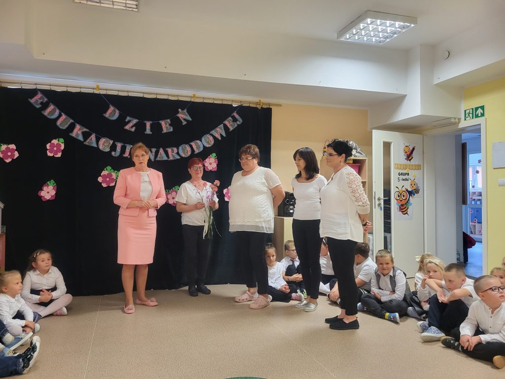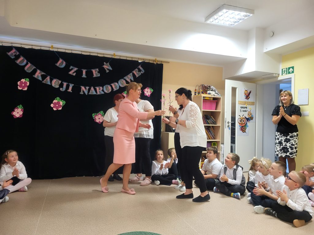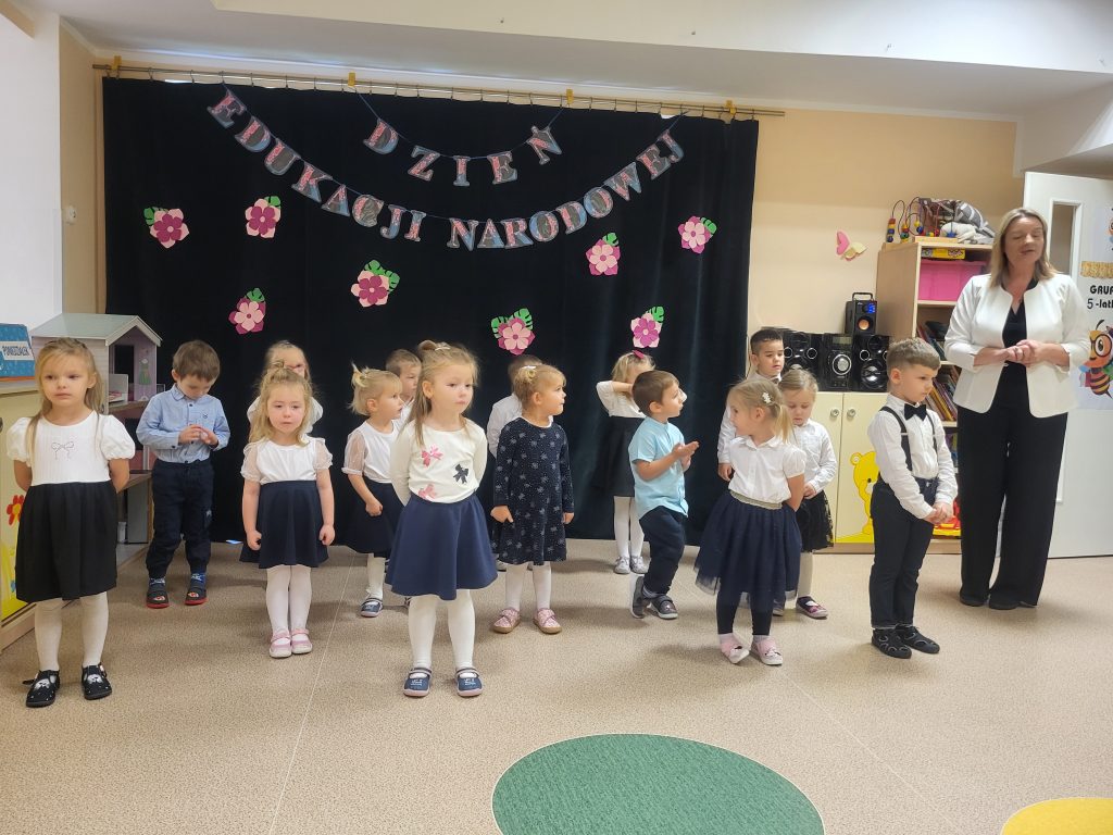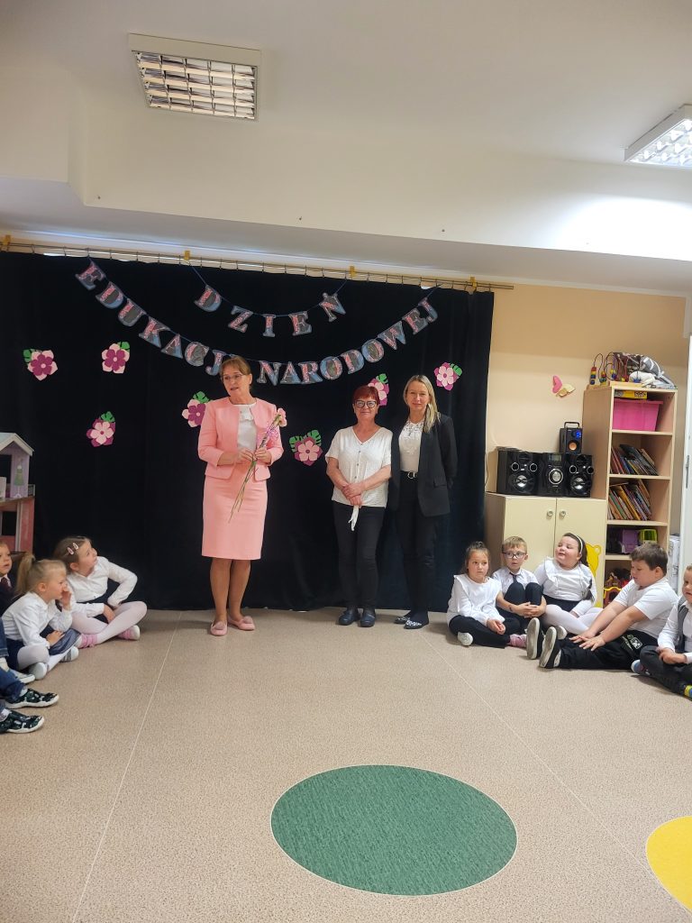 Dzień Edukacji Narodowej to wyjątkowy dzień dla wszystkich pracowników oświaty. Nasze przedszkolaki również chciały podziękować w tym dniu, swoim paniom oraz wszystkim pracownikom przedszkola za uśmiech, życzliwość i trud włożony w ich wychowanie, za opiekę, dobre rady oraz smaczne posiłki. Dzieci wystąpiły z piosenkami i tańcami, następnie wręczyły samodzielnie przygotowane laurki. Po części artystycznej głos zabrała pani dyrektor Elżbieta Lorenc-Mytnik składając wszystkim pracownikom życzenia i dziękując im za ich pracę.