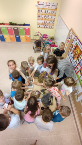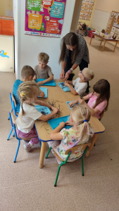 Zajęcia kierowane z całą grupą w oparciu o program wychowania przedszkolnego. Organizowanie zabaw i zajęć twórczych, ruchowych, stymulujących rozwój dzieci. Zajęcia edukacyjne w sali i na powietrzu kierowane i niekierowane prowadzone według planów miesięcznych oraz wybranego programu nauczania. Język nowożytny (jęz. angielski wtorek, czwartek) Zabawy rytmiczne i ruchowe ( rytmika środa, piątek) Realizacja programów: preorientacji zawodowej, profilaktyki uzależnień, „Uczę się bezpiecznie żyć”, „Zdrowy i aktywny przedszkolak” Zabawy dowolne w kącikach zainteresowań przy niewielkim udziale nauczyciela. Czynności samoobsługowe przed wyjściem na spacer, do ogrodu przedszkolnego. Doskonalenie czynności ubierania się, wiązania sznurowadeł, zapinania guzików, suwaków. Spacery, zabawy na świeżym powietrzu, zabawy i gry ruchowe, obserwacje przyrodnicze, prace porządkowe i ogrodnicze. |